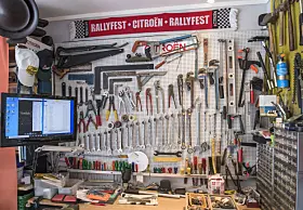 Uansett hvilken vegg du hviler øynene på i garasjen til Jan Sverre Tronsmoen, lyser det en Citroën-logo, navnet Citroën eller noe nært knyttet til Citroën mot deg.
